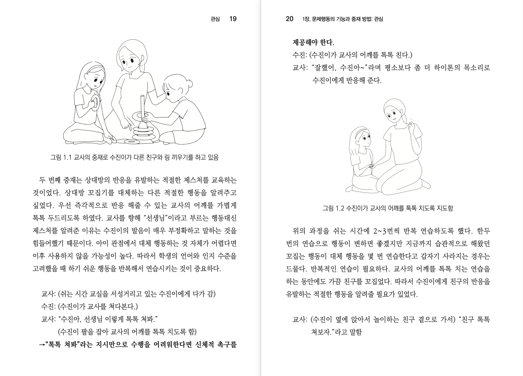 문제행동 중재에 대한 기본적인 이해와 다양한 사례가 수록되어있습니다. 행동중재와 관련된 광범위한 경험을 지닌 저자들은 실행가능한 전략을 쉬운 설명과 삽화를 바탕으로 제시하고 있습니다.